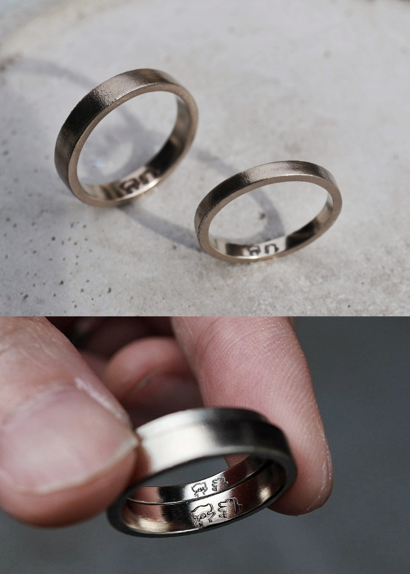 以下對戒由一日金工課的學員親自設計和參與製作,完成了戒指設計後,再由我們鑄金後製成不同的貴金屬,成品完全保留當天的手工痕跡。